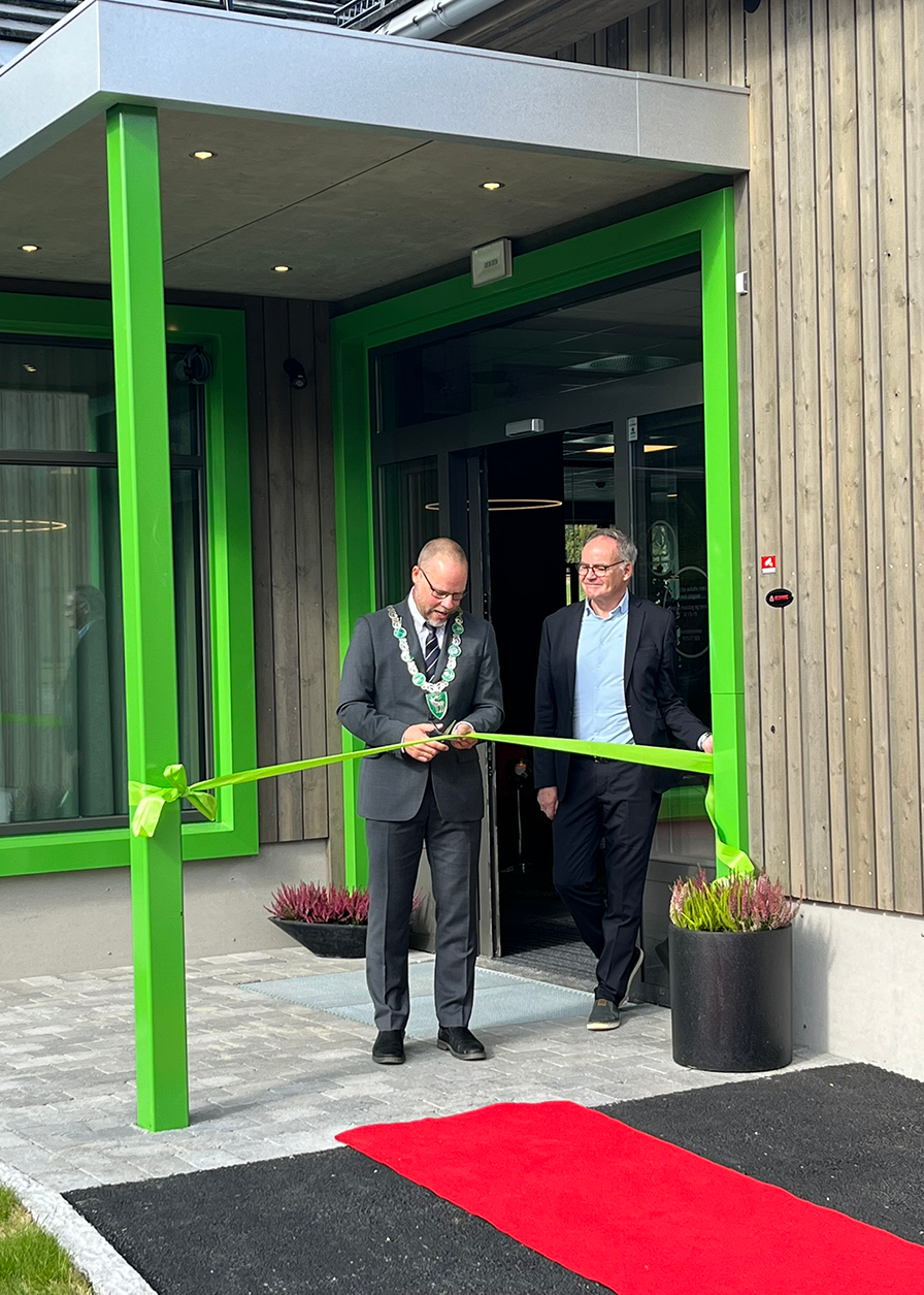 Med rød løper, snorklipping, fine taler og musikalsk innslag, ble det nye bankbygget offisielt åpnet.